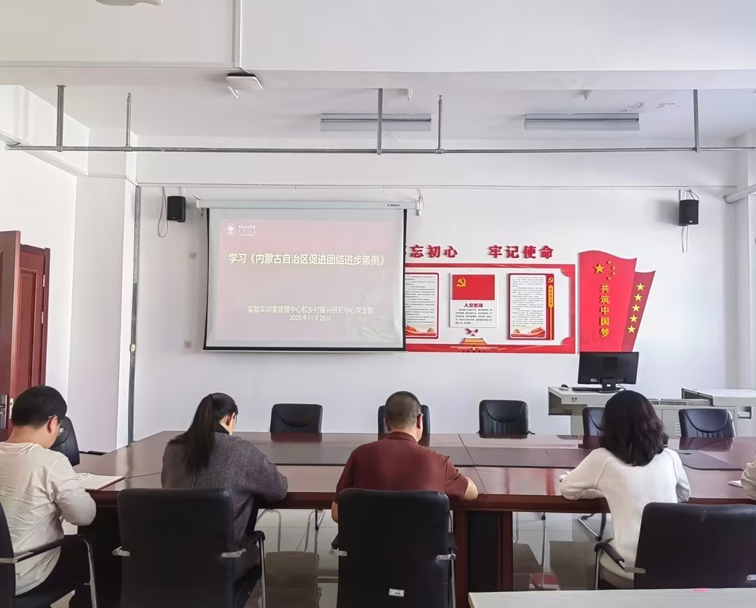11月20日,呼伦贝尔学院实验实训室管理中心和乡村振兴研究中心党支部开展专题学习,集中研读《内蒙古自治区促进民族团结进步条例》。 党员们深入领会条例以铸牢中华民族共同体意识为主线的核心要义,明确依法推进民族团结进步工作的实践要求。大家表示,将立足岗位把条例精神转化为实际行动,为筑牢祖国北疆安全稳定屏障、服务地方发展贡献力量。