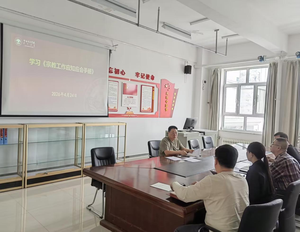 为深入贯彻落实新时代党的宗教工作基本方针,切实提升党员干部宗教政策理论素养与政治鉴别力,筑牢校园意识形态安全屏障,4 月 24日,实验实训室管理中心党支部和乡村振兴研究中心党支部组织全体党员,开展《宗教工作应知应会手册》专题学习会。
